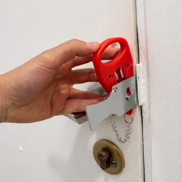 Sentirte seguro no debería depender del lugar en el que estés. Nuestro Cerrojo Portátil te acompaña a cualquier sitio para darte esa tranquilidad que mereces, tanto si duermes en un hotel, piso turístico, residencia de estudiantes o incluso en tu propia casa.